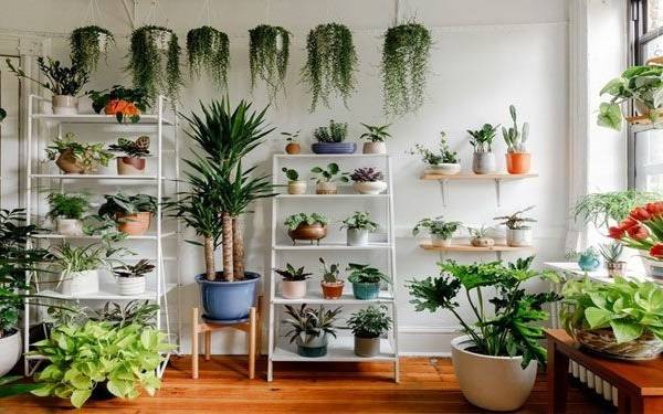 در کنار خرید گل می توانید قفسه های چوبی، فلزی و یا حتی پلاستیکی هم تهیه کنید تا با قرار دادن گل ها روی آنها، زیبایی بیشتری به خانه دهید. قرار دادن گل ها در آشپزخانه و اتاق خواب را نیز فراموش نکنید. حتی می توانید برخی از گل ها را به شکل آویز به دیوار های خانه نصب کنید. البته برای اینکار در نظر داشته باشید که خانه شما به اندازه کافی آفتاب گیر باشد تا گل ها به میزان مناسبی نور دریافت کنند.