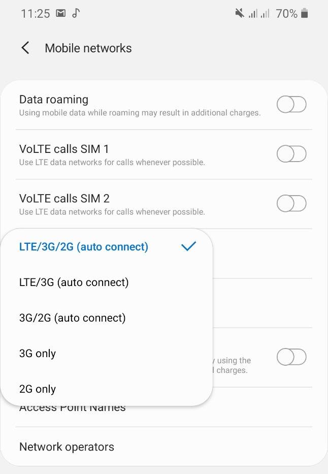 بصورت پیش فرض گوشی های هوشمند نسل جدید که از اینترنت 4G پشتیبانی می کنند، حالت نتورک در آنها بصورت LTE/3G/2G می باشد که در شرایط خاص و با وجود فعال بودن این حالت، آنتن دهی گوشی بسیار ضعیف خواهد شد. به همین دلیل توصیه ای که برای شما داریم، تغییر این حالت به 3G only می باشد که در آنتن دهی گوشی شما موثر خواهد بود. در ضمن برای دسترسی به این تنظیمات، وارد تنظیمات گوشی شوید و عبارت Mobile Networks را سرچ کنید.