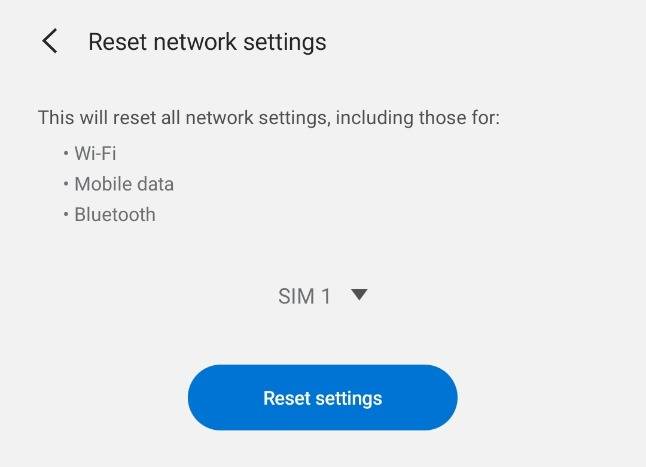 اگر با انجام راه های بالا تغییری را در این زمینه احساس نکردید، بهترین کار ریست کردن تنظیمات شبکه به حالت اول آن می باشد که تمام تنظیمات وارده شما حذف خواهند شد و به حالت اول تغییر خواهند یافت. برای این کار وارد تنظیمات گوشی شوید و بر روی علامت ذره بین در تنظیمات بفشارید و عبارت Reset network settings را جستجو کنید و سپس بر اساس سیم کارت های موجود در گوشی اقدام به ریست کردن نمائید.