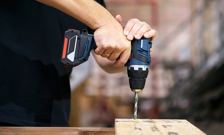 تصویر کاربر در حال کار با دریل شارژی بر روی چوب