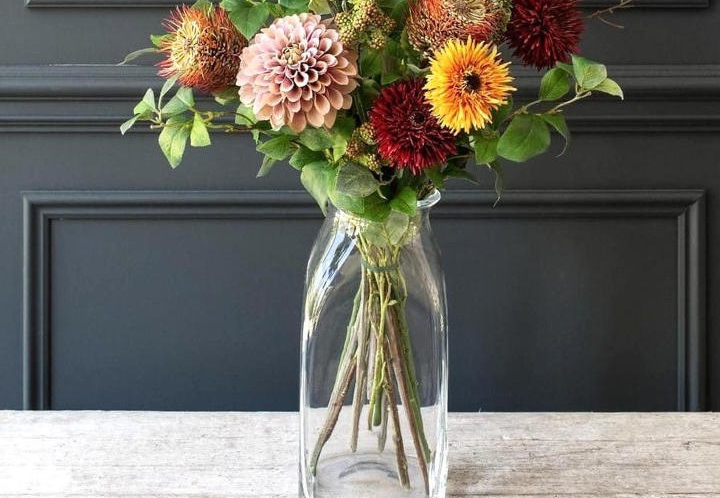 ایده دیگری که با استفاده از آن میتوانید حالوهوای پاییز را به خانه بیاورید، تهیه گلدانی از گل و گیاه های زیبای پاییزی با رنگهای گرم و جذاب است. گلدان کوچکی تهیه کنید و به سلیقه خودتان آن را از چنین گلهایی پر کنید؛ برای مثال گلهای داوودی، آهاری و کوکب انتخابهای بسیار خوبی هستند. برای آنکه گلدانتان طبیعیتر جلوه کند، میتوانید با شاخوبرگهای کوچک درختان تزیینش کنید و اینها را هم در کنار گلها بگذارید.