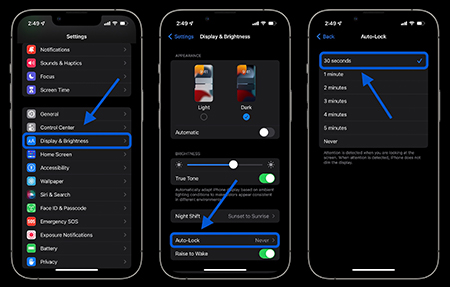 به Settings > Display & Brightness > Auto-Lock بروید.
