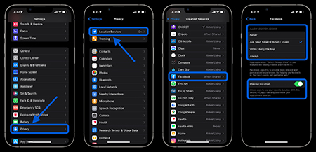 شماره گیری در تنظیمات خدمات موقعیت مکانی خود راه دیگری برای افزایش عمر باتری است. (همچنین می تواند استفاده از داده های سلولی را کاهش دهد). برای این منظور به Settings > Privacy > Location Services بروید تا امتیازات برنامه های خود را به روز کنید.