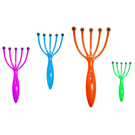 این ماساژور دارای 5 سر می باشد که در انتهای هرکدام از آن ها یک سری کروی فلزی سیقل داده شده قرار گرفته است تا در هنگام تماس با سر آسیبی به پوست سر نرسد و براحتی بر روی پوست بلغزد. یکی از دلایل ریزش مو ، کاهش جریان خون در رگ های سر است و برای جلوگیری از این اتفاق می توان روش های گوناگونی را به کار برد که یکی از آن ها ماساژ دادن پوست سر است