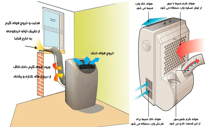 • کولر گازی پرتابل قابلیت جابجایی آسان دارد و می توانید به راحتی محل آن را تغییر دهید.
