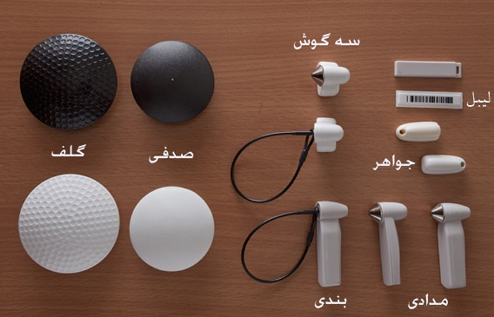 3. لیبل و تگ : که روی کالاها متصل می شوند. این تگ ها که با نام تگ دزدگیر هم شناخته می شوند، بعد از پرداخت هزینه کالا توسط مشتری و قبل از خروج آن از فروشگاه، توسط پرسنل جدا یا غیرفعال می شوند.