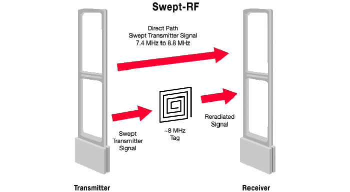 نحوه عملکرد گیت بر اساس جابجایی اطلاعات الکترونیکی (همان سیگنال 0 و 1) بین آنتن و تگ است. اگر تگ یا لیبل متصل به کالایی در محدوده فرکانس رادیویی آنتن قرار داشته باشد توسط آنتن شناسایی شده و آلارم هشدار خروج کالای غیرقانونی به صدا در می آید.
